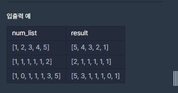 - 정수가 들어있는 배열 num_list가 매개변수로 주어진다
