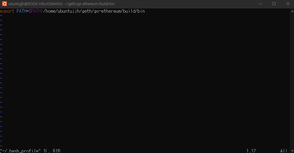 export PATH=$PATH:********(본인컴퓨터 geth설치주소)/geth/go-ethereum/build/bin