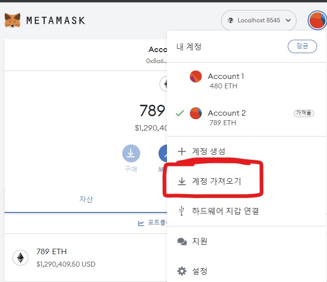 - 현재 http://localhost:8545 네트워크를 수정한다 (클릭)