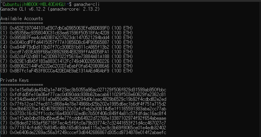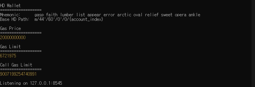 ganache-cli 실행