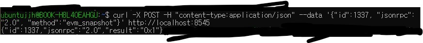curl -X POST -H "content-type:application/json" --data '{"id":1337, "jsonrpc": "2.0", "method":"evm_snapshot"}' http://localhost:8545