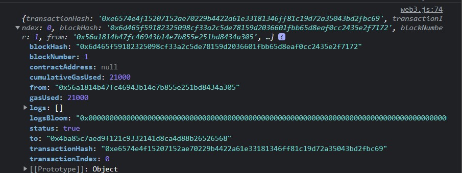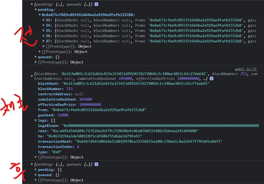 ETH 전송 후 채굴 전 트랜잭션 풀, 트랜잭션 확인