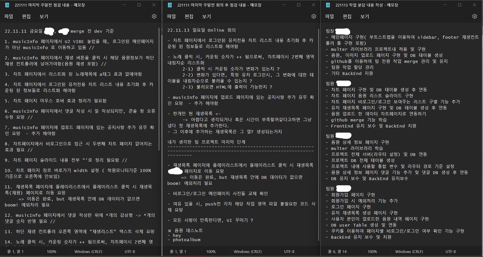 팀원 A : 팀장님? 이거 왼쪽 메뉴바랑 하단 재생컨트롤러는 어떻게 해요?! 각자 할까요? 누가 하기로 지금 정할까요?
