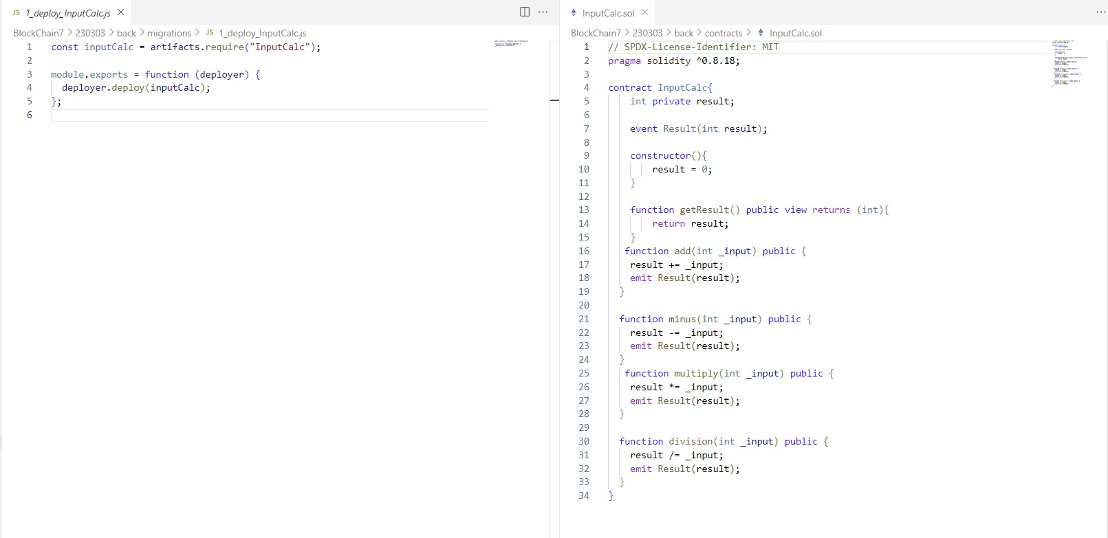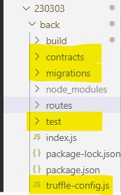 - Smart Contract 코드 작성 폴더이다. Solidity언어로 작성한 코드를 여기에 작성하면 된다고 생각하면 편하