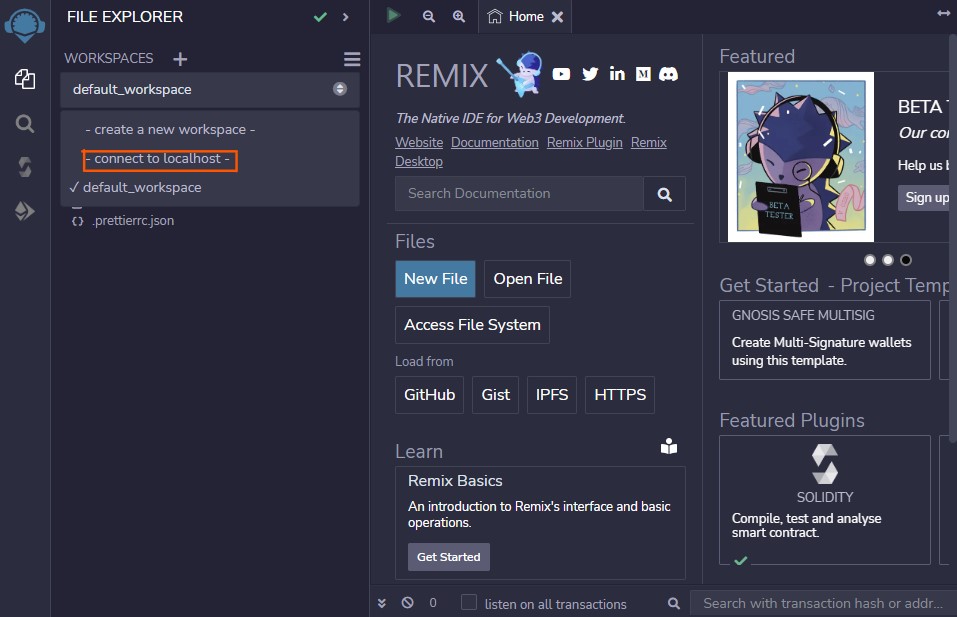 이후 Remix 웹페이에서 localhost로 연결 해준다