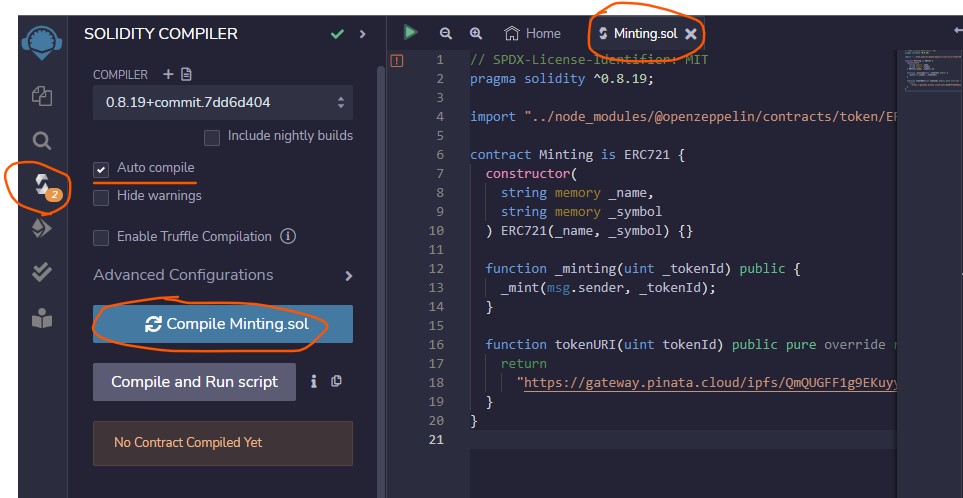 - 이후 CID를 복사해서 Remix 웹에 있는 solidity를 수정 후 컴파일