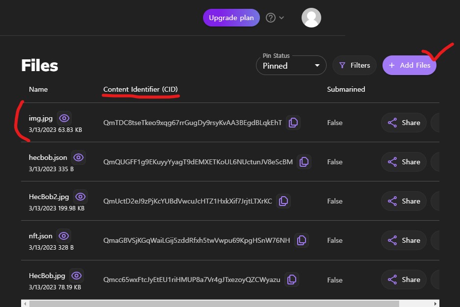 - 성공적으로 업로드된 이미지의 CID를 복사해 둔다