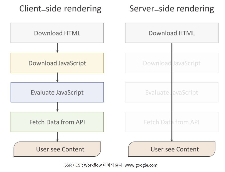 - SSR가 다르게 초기 로딩이 느릴 수는 있지만, 모든 데이터들을 불러옴에 있어서 빠른 페이지 이동이 가능하다