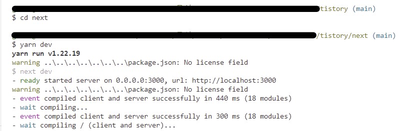 # 개발 환경으로 Nextjs 실행