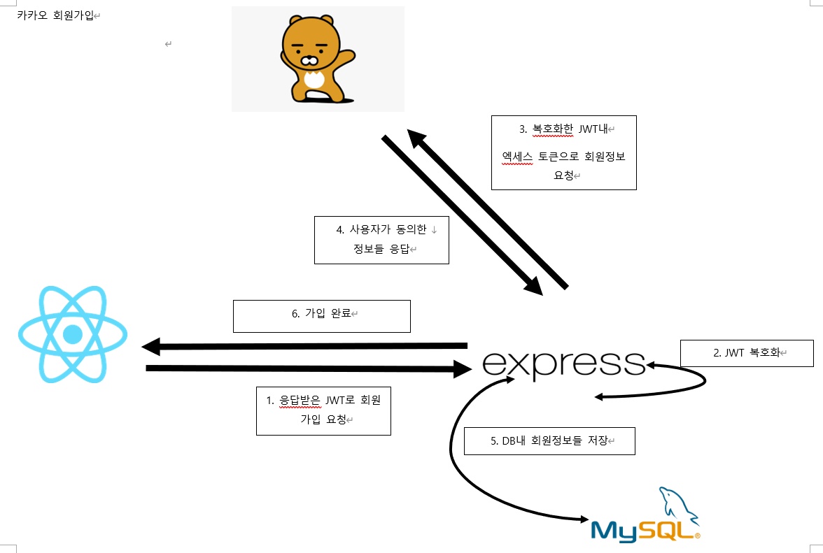 위 과정으로 받은 JWT토큰으로 다시 자체 서버에 해당 정보를 저장하는 가입 요청을 다음과 같은 순서로 한다