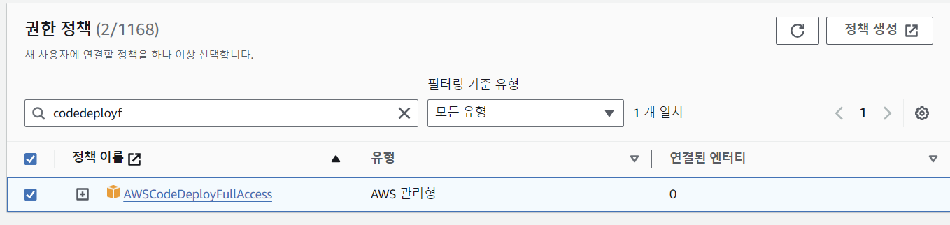 - 먼저 EC2에 S3와 CodeDeploy에 접근하는 역할