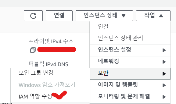 - IAM 역할 수정을 클릭 후 위 과정에서 생성한 IAM 설정으로 업데이트해주면 된다