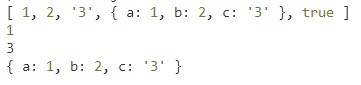 let arr1 = [1, 2, "3", { a: 1, b: 2, c: "3" }, true];