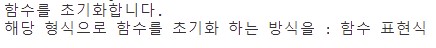 console.log("해당 형식으로 함수를 초기화 하는 방식을 : 함수 표현식");