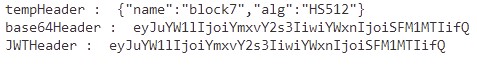 const tempHeader = JSON.stringify({ name: "block7", alg: "HS512" });