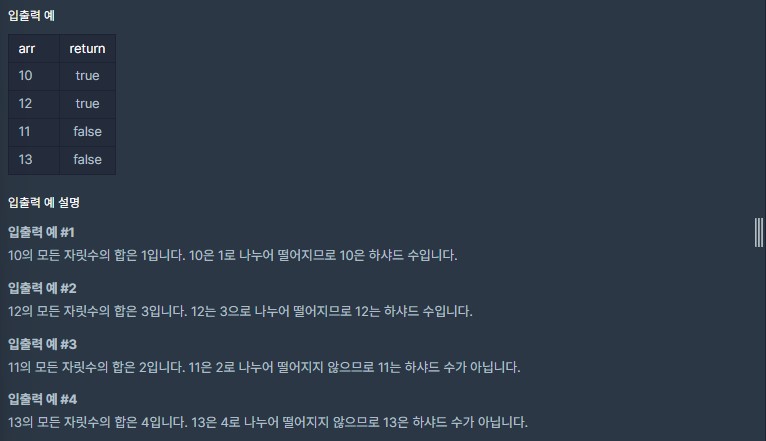 (Programmers) [Lv. 1] 하샤드 수