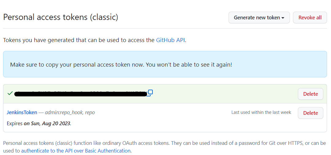 - Personal access tokens > generate new token