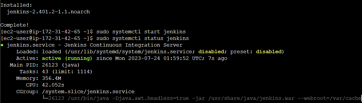 - sudo systemctl start jenkins : Jenkins를 작동